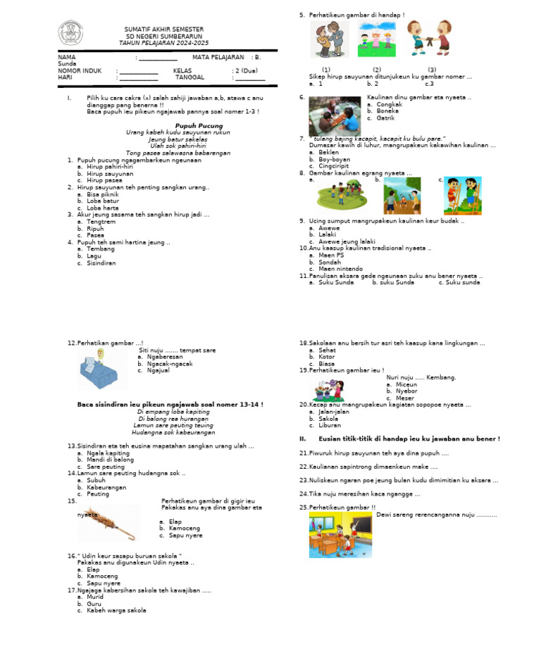 Mempelajari Bahasa Sunda di jenjang SMP, khususnya kelas 2, merupakan tahapan penting bagi siswa untuk memperdalam pemahaman dan penguasaan terhadap kekayaan budaya lokal. Bahasa Sunda bukan sekadar mata pelajaran biasa, melainkan jembatan untuk melestarikan nilai-nilai luhur dan kearifan lokal yang terkandung di dalamnya. Dalam proses belajar mengajar, ketersediaan sumber belajar yang memadai, termasuk soal-soal latihan, menjadi krusial. Artikel ini akan membahas secara mendalam mengenai pentingnya mengunduh soal Bahasa Sunda kelas 2 SMP, jenis-jenis soal yang sering ditemui, serta tips dalam memanfaatkannya secara efektif.
