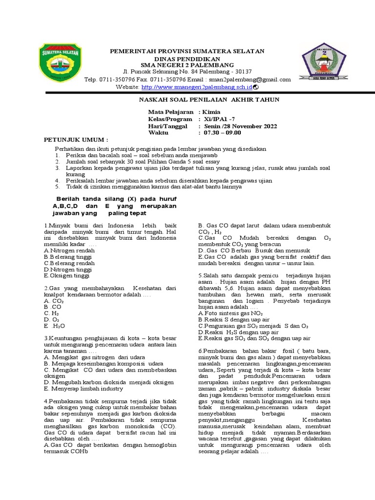 Berikut adalah beberapa contoh soal beserta pembahasannya yang mencakup materi kimia semester 1 kelas 11.